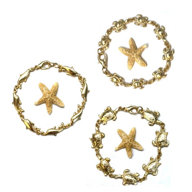 Sealife Quality Bracelets M100serie (for 12) Quality plated 18KT GF Sealife bracelets assorted (adult size) showing turtles and dolphins, you can choose w or without dolphins. They don’t tarnish at all !
